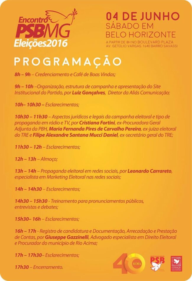 O Diretório Municipal do PSB de João Pessoa realizará, nesta sexta-feira (3), no auditório do Hotel Sapucaia, na praia de Tambaú, o seminário Diretrizes de Plano de Governo e Orientações Jurídicas para o Período Eleitoral. O evento, que terá início às 9h, contará com a participação do governador Ricardo Coutinho (PSB), da ex-secretária Cida Ramos…