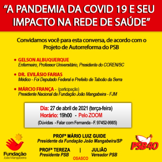 A Fundação João Mangabeira (FJM) e a Negritude Socialista Brasileira abrem, nesta quarta-feira (14), o Webinário Nacional da Autorreforma – PSB 40 com a temática “Emancipação e o Empoderamento do Negro”.