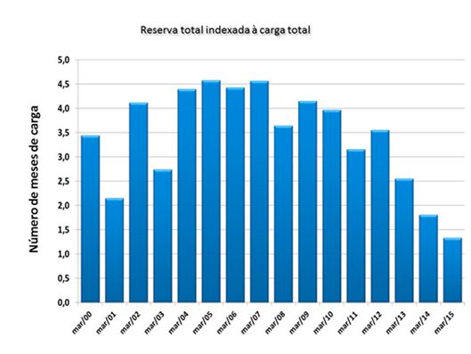 (c) perda de confiabilidade: até meados da década de 1990, o sistema começava a expandir sua capacidade sempre que o risco de déficit atingia 5% no quinto ano a partir do presente. Hoje, como veremos, o sistema opera com alto risco de déficit no ano em curso.