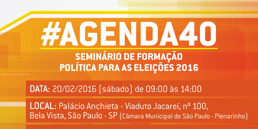 O programa “Agenda40” quer introduzir ações preparatórias, um conjunto de atividades para identificação e proposição de candidaturas do PSB, às eleições municipais de 2016. Os princípios e paradigmas que devem constar em propostas de pré-candidatos serão elencados e provocados durante a palestra da liderança nacional do PSB, secretário Geral do partido, Renato Casagrande, ex-governador do Espírito Santo.