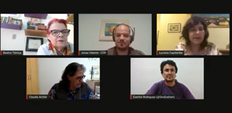 O seminário ‘Guerra Cultural e Luta Ideológica – caminhos para reconstruir a democracia’ teve seu último debate virtual realizado na noite desta segunda-feira (13/9), com o tema ‘Tática da Luta Ideológica – Construção de Plataformas Sociais’. Iniciativa do Observatório da Democracia, pelo seu You Tube, contou com a participação de Beatriz Tibiriçá, do Coletivo Digital; Jonas Valente, da Coalizão Direitos na Rede; Claudia Archer, diretora da Associação Software Livre, e Everton Rodrigues, ativista do software livre, com mediação de Luciana Capiberibe, da Fundação João Mangabeira (FJM).