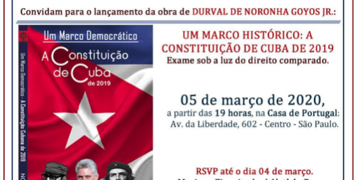 EVENTO: LANÇAMENTO DE “Um marco democrático: a Constituição de Cuba de 2019”, de DURVAL DE NORONHA GOYOS JR.