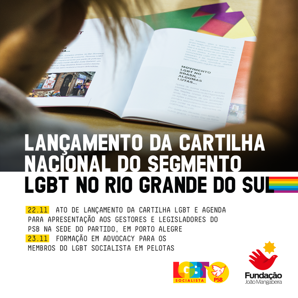 A cartilha LGBT voltada para gestores(as) e legisladores(as) é uma publicação secretaria LGBT socialista, com apoio da FJM, para esclarecer dúvidas, direitos e fatos históricos desta população. Nesta sexta-feira, o segmento está no Rio Grande do Sul para dar início ao lançamento da cartilha no estado. Confira a agenda: