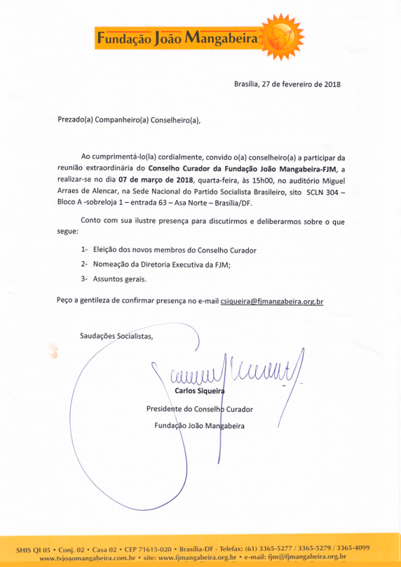 Convocação Reunião Extraordinária do Conselho Curador da FJM 10 de fevereiro 202029 de janeiro de 2020