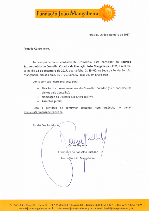 Convocação Reunião extraordinária do Conselho Curador da FJM 10 de Janeiro de 20199 de janeiro de 2019