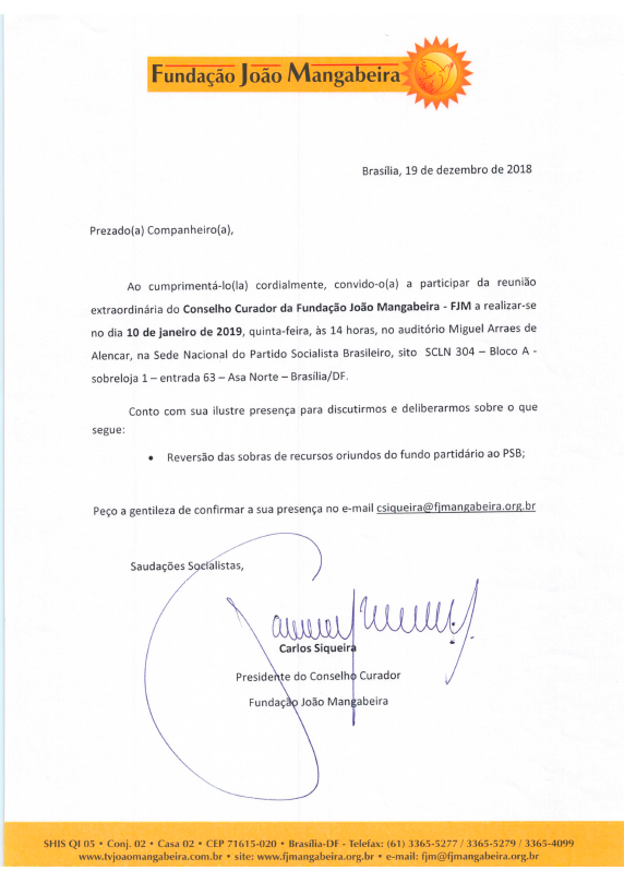 jan92019 9 de janeiro de 2019Navegação de post:AnteriorPost anterior:Em Pernambuco, Navarro discute projetos com as direções da FJM e do PSB localPróximoPróximo post:Convocação Reunião Conjunta do Conselho Curador e Diretoria da FJM 10 de Janeiro de 2019RelacionadasConvocação Reunião Extraordinária do Conselho Curador da FJM 10 de fevereiro 202029 de janeiro de 2020Convocação Reunião Ordinária do Conselho Curador da FJM 10 de fevereiro 202029 de janeiro de 2020Convocação Reunião ordinária do Conselho Curador da FJM_ 17 de junho de 201912 de junho de 2019Convocação Reunião Conjunta do Conselho Curador e Diretoria da FJM 10 de Janeiro de 20199 de janeiro de 2019Convite para a Reunião ordinária do Conselho Curador da FJM em 17 de dezembro de 201817 de dezembro de 2018Convite para a Reunião Extraordinária do Conselho Curador da FJM em 21 de junho de 201811 de junho de 2018