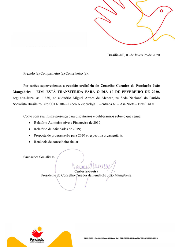 Convocação Reunião Extraordinária do Conselho Curador da FJM 10 de fevereiro 202029 de janeiro de 2020
