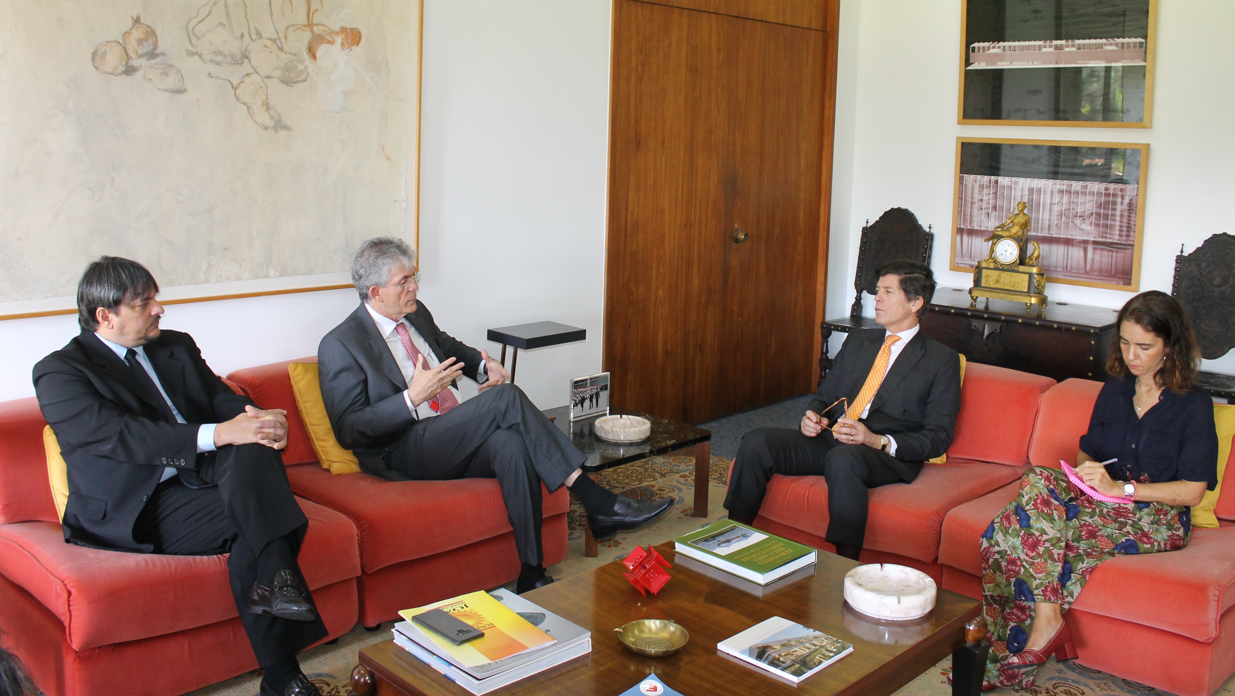 O presidente da Fundação João Mangabeira(FJM), ex-governador da Paraíba, Ricardo Coutinho, esteve na manhã de hoje na Embaixada de Portugal em Brasília. A visita ao Embaixador Jorge Dias Cabral, deveu-se à realização do “Seminário Internacional de Economia Criativa”. O presidente solicitou ao Embaixador que indicasse um representante de Portugal para compor a mesa, cujo tema é Reforma Urbana Criativa, no evento que acontecerá, entre os dias 21 e 23 de março, em Brasília.