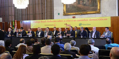 O Seminário “Diálogo Brasil” reuniu, nesta segunda (04), mais de 300 pessoas no salão nobre da Câmara Municipal de São Paulo e contou com mais de 6 mil usuários na transmissão online do evento. O objetivo do encontro foi discutir a crise no país e apontar caminhos democráticos para enfrentá-la.