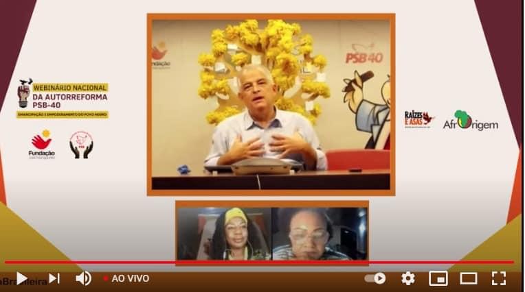 O presidente da Fundação João Mangabeira (FJM), Márcio França, participou na noite desta quarta-feira, 14/04, da abertura do Webinário Nacional da Autorreforma PSB40 – Tese: Emancipação e Empoderamento do Negro, que debate a Autorreforma sob a ótica racial. O evento foi moderado pela secretária geral da Negritude Socialista Brasileira (NSB) deputada estadual Cristina Almeida (PSB-AP), e contou também com a participação de Valneide Nascimento, secretária nacional da NSB.