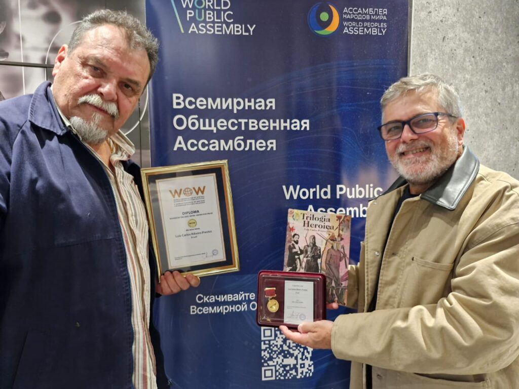 A Fundação João Mangabeira (FJM) e o Partido Socialista Brasileiro (PSB) participaram do 2º Congresso da Organização Mundial de Escritores (World Organization of Writers – WOW), realizado em Moscou, Rússia, no âmbito da Assembleia Social Mundial. Durante a cerimônia de entrega do Prêmio Literário Mundial WOW-2025, ocorrido no dia 21 de setembro, o escritor brasileiro Luiz Carlos Prestes Filho foi um dos cinco laureados, ao lado de autores da China, Indonésia, Síria e Rússia. Prestes Filho foi reconhecido pela obra “Trilogia Heróica”, publicada com apoio da Fundação João Mangabeira(FJM) e recentemente traduzida para o russo. O prêmio é atribuído a autores reconhecidos por dar uma contribuição significativa para o desenvolvimento da literatura mundial