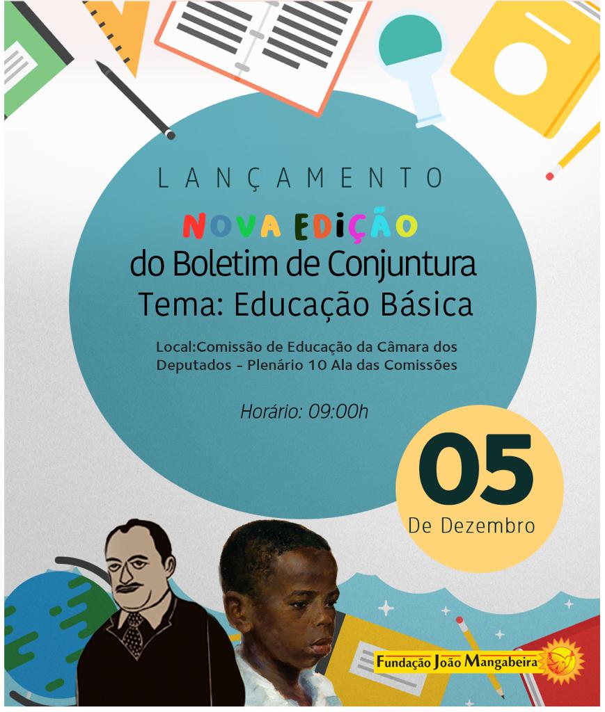 No próximo dia 5 de dezembro, às 9h no Plenário 10, Ala das Comissões, da Câmara dos Deputados, a Fundação João Mangabeira(FJM) irá lançar a mais nova edição do seu boletim Conjuntura Brasil, dessa vez com o tema “ Educação Básica – o começo de tudo”. Para Alexandre Navarro, presidente da FJM, “ é preciso reconhecer que os problemas da educação no Brasil não são apenas da ordem da falta de recursos, há imensos desafios a serem vencidos no campo da pedagogia e da gestão”, afirma.
