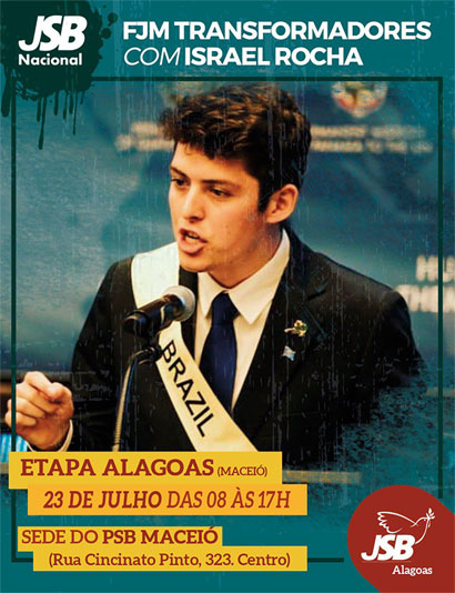 O evento será ministrado por Israel Rocha, e contará com a presença do Secretário Nacional da Juventude Socialista Brasileira (JSB), Tony Sechi e do Presidente Nacional da Juventude Socialista Brasileira, Douglas Alves.