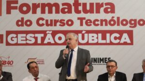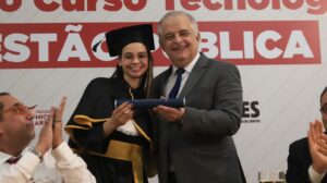 “Sou do Rio Grande do Sul, da cidade de Campo Bom. Eu estou muito feliz porque é aos 62 anos que eu concluo o meu curso superior. Quero agradecer especialmente ao ministro e presidente da Fundação, Márcio França”, contou a formanda Maria Regina.