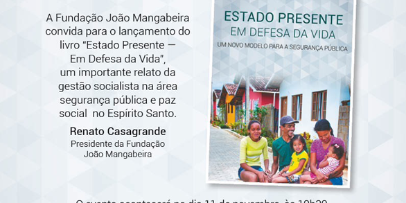 O Programa Estado Presente, que durante os quatro anos do governo Renato Casagrande (PSB), alcançou resultados inéditos na redução dos índices de violência e criminalidade no Estado, virou livro e será lançado nesta quarta-feira (11) pelo ex-governador e presidente da Fundação João Mangabeira, Renato Casagrande. O coquetel de lançamento será realizado a partir das 19h30, no hotel Sheraton, em Vitória.