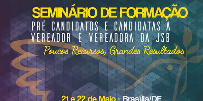 A Juventude Socialista Brasileira (JSB) convida seus pré-candidatos a vereador para o seminário “Campanha Eleitoral: Poucos Recursos e Grandes Campanhas”, que será realizado em Brasília, no Hotel Nacional, nos dias 21 e 22 de maio. As inscrições começam nesta segunda-feira (9) e terminam no próximo domingo (15).