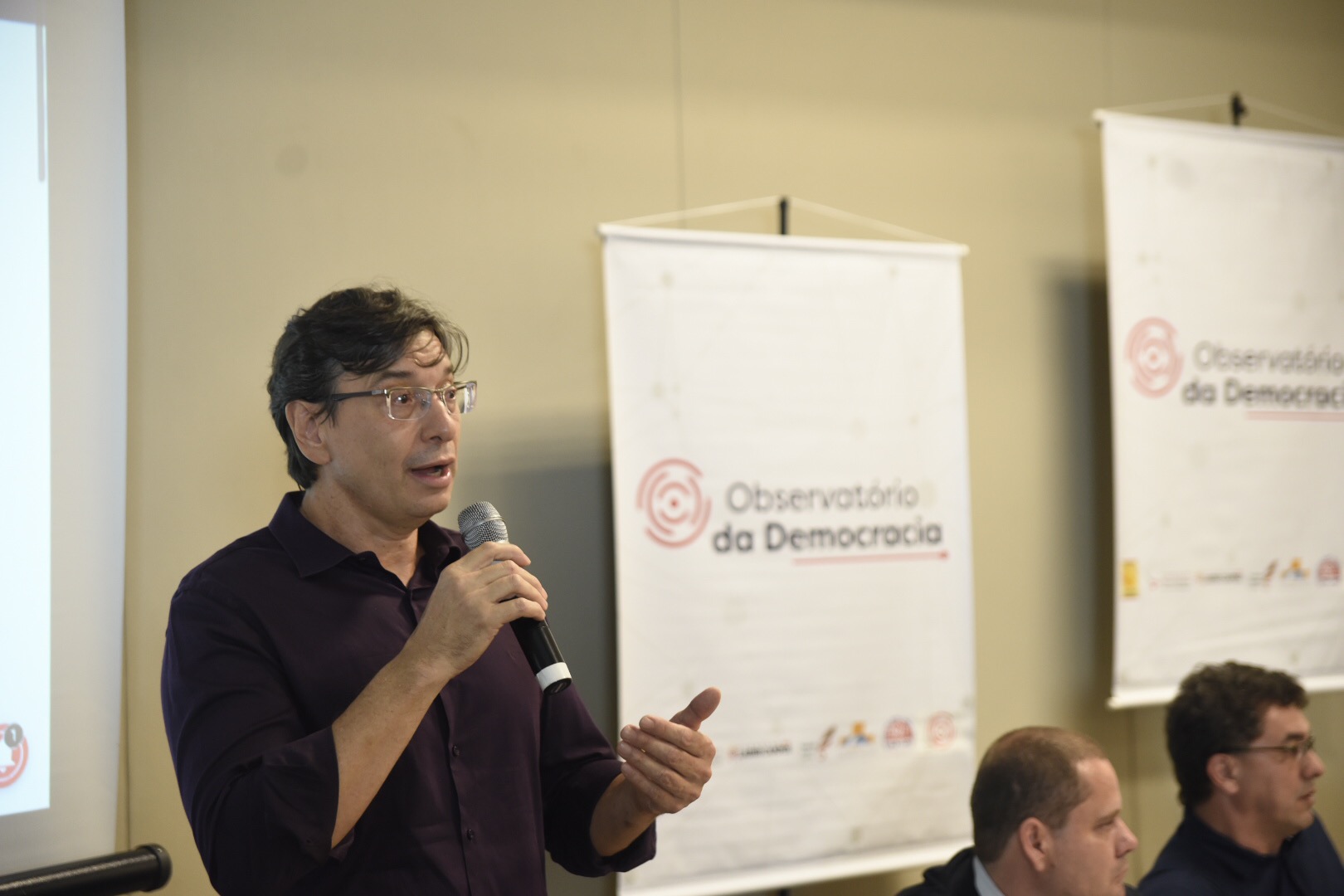 Márcio Pochmann, presidente da Fundação Perseu Abramo, ressaltou a importância de acompanhar as políticas públicas criadas pelo atual governo, além daquelas extintas. Ele explicou a metodologia de sistematização do conteúdo do Observatório da Democracia e afirmou que a democracia no Brasil encontra-se ameaçada pelo desmonte de políticas públicas, “o primeiro passo para mudar a realidade é conhecê-la, se a gente não conhece bem a realidade temos dificuldade de mudá-la”.