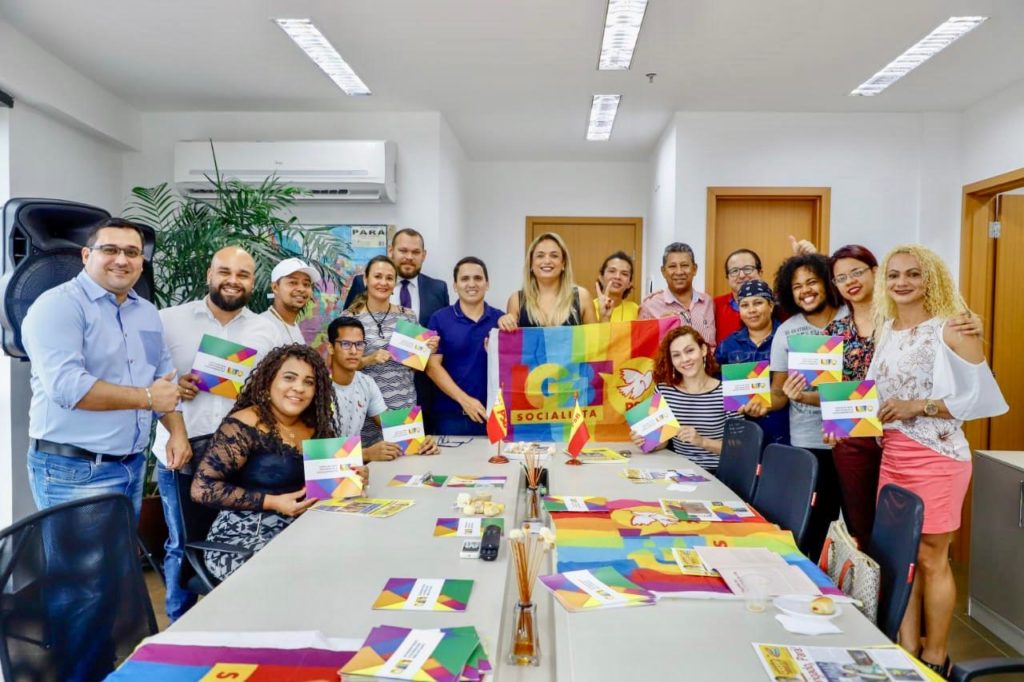 Em reunião na sede do PSB/Pará, em Belém, foi lançada, hoje pela manhã, a Cartilha LGBT para gestores e legisladores. Presentes o deputado federal Cássio Andrade, presidente estadual do PSB; Tatiane Araújo, secretária nacional LGBT/PSB; Zé Francisco, presidente do PSB/Belém e o Michell Durans, ex-secretário estadual de Justiça e Direitos Humanos, entre outros dirigentes, lideranças e militantes do PSB e do movimento LGBT paraense.
