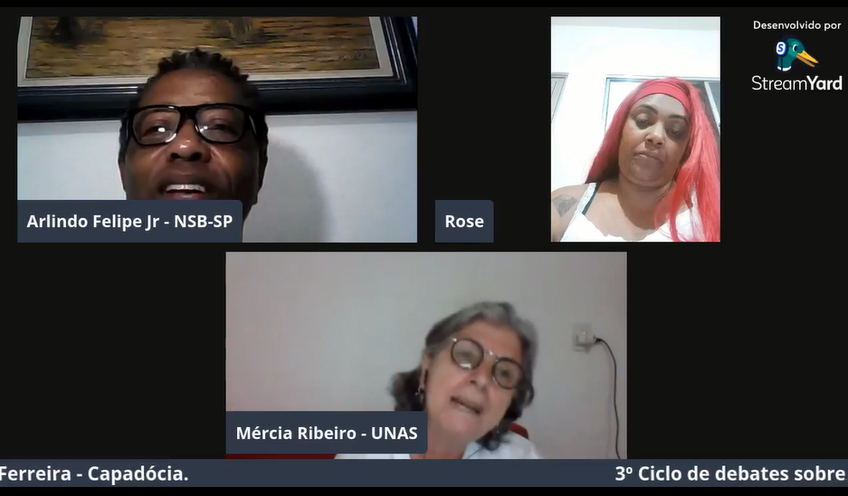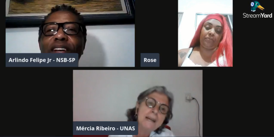 A terceira live da série sobre o Mapa da Violência, que discute a segurança pública contra negros, realizada pela Negritude Socialista Brasileira-SP (NSB-SP), em 4 de novembro, contou com a presença de importantes líderes comunitárias de favelas de São Paulo. Participaram Mércia Ribeiro, líder comunitária de Heliópolis e integrante da União de Núcleos, Associações dos Moradores de Heliópolis e Região (UNAS); Rose Ferreira, líder comunitária da Capadócia e militante por moradia desde 2010, e Luiza de Guaianazes, ou mãe Luiza, como é mais conhecida na região, presidente da ONG Orgulho de uma Raça e zeladora de santo, com mediação de Arlindo Felipe Junior, secretário geral da NSB-SP.