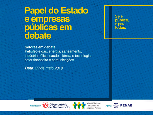 A oficina O papel do Estado e das empresas públicas será realizada no dia 29/05 em Brasília, organizada pelo Comitê Nacional em Defesa das Estatais e pelo Observatório da Democracia.Setor…