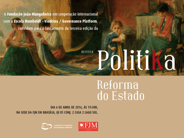 A Fundação João Mangabeira (FJM) lança, no próximo dia 6 de abril, a partir das 19h30, na sede da FJM, em Brasília, o terceiro número da revista “Politika”. Nesta edição,…