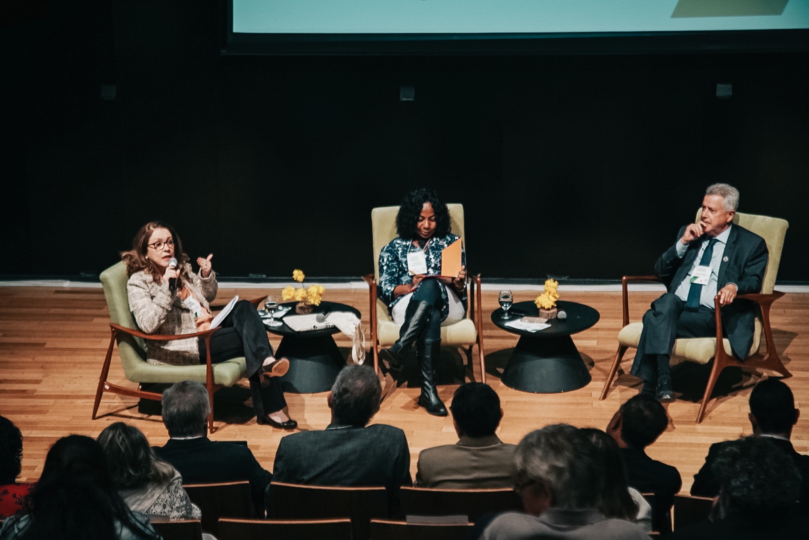 A jornalista Helena Chagas, a moderadora Valneide Nascimento e o ex-governador Rodrigo Rollemberg, discutiram mídia, democracia e Previdência no Brasil.
