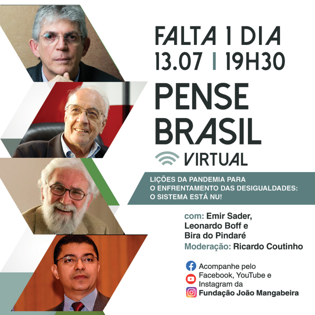 A Fundação João Mangabeira (FJM), do Partido Socialista Brasileiro (PSB), realiza o Pense Brasil Virtual, que nesta edição, discute as “Lições da pandemia para o enfrentamento das desigualdades: o sistema está nu! ”