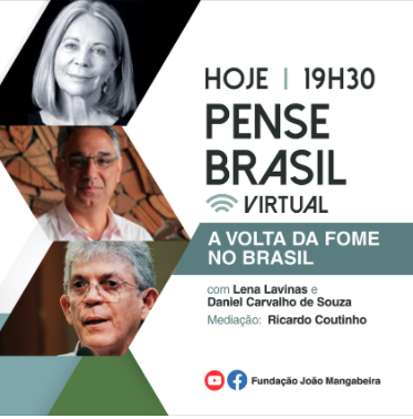 É sobre a volta da fome no Brasil que o Pense Virtual da próxima segunda-feira, 23, discutirá. Para isso, convidamos a Prof. Dra. Lena Lavinas (UFRJ) e Daniel Carvalho de Souza da ONG Ação da Cidadania, com a moderação do presidente da Fundação João Mangabeira, Ricardo Coutinho, que fará uma homenagem aos 30 anos da FJM.