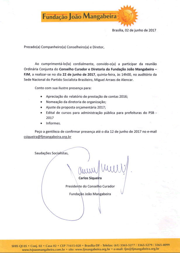 Convite para a Reunião ordinária do Conselho Curador da FJM em 17 de dezembro de 201817 de dezembro de 2018