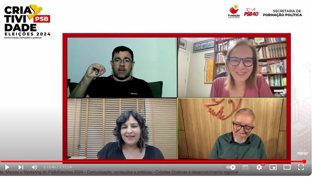 Os ensinamentos são da profissional de referência mundial em Economia Criativa, Ana Carla Fonseca Reis, que falou sobre ‘Cidades Criativas e Desenvolvimento Regional’, na quarta aula do curso de formação política do PSB, ‘Criatividade: Marcas e Marketing do PSB/Eleições 2024 – Comunicação, Conteúdo e Práticas’, nesta quinta-feira (25), via You Tube e Zoom.