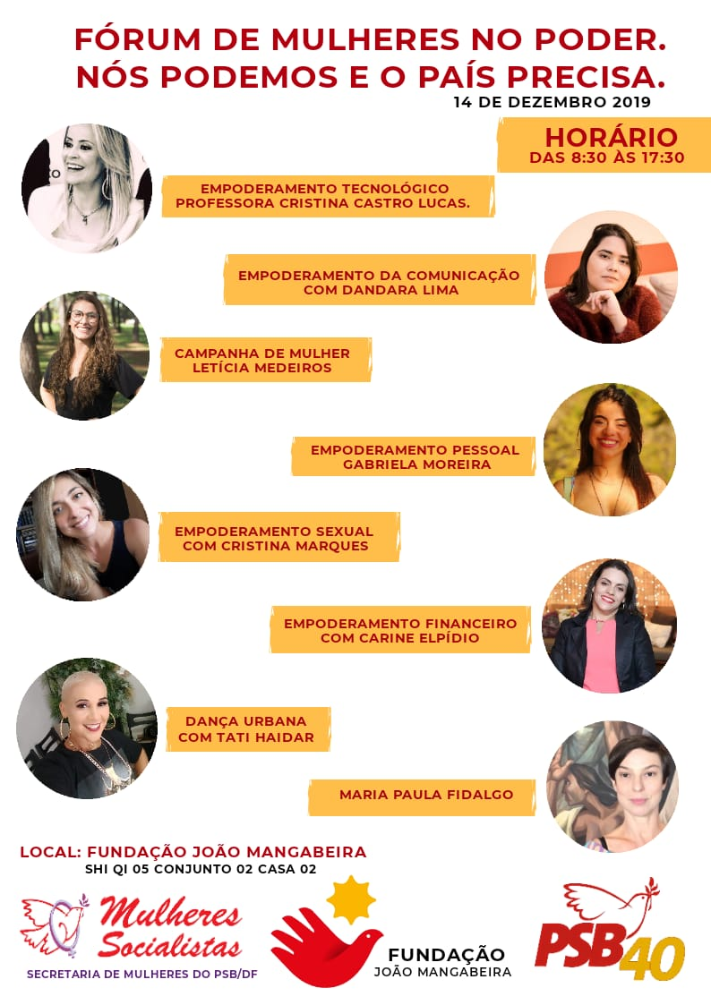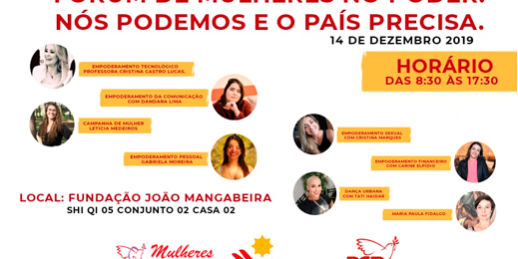 Será no dia 14 de dezembro próximo, das 8h30 às 17h30, na sede da Fundação João Mangabeira em Brasília, o Fórum Mulheres no Poder: uma iniciativa que conecta capacidades em prol da emancipação das mulheres na política e na sociedade.