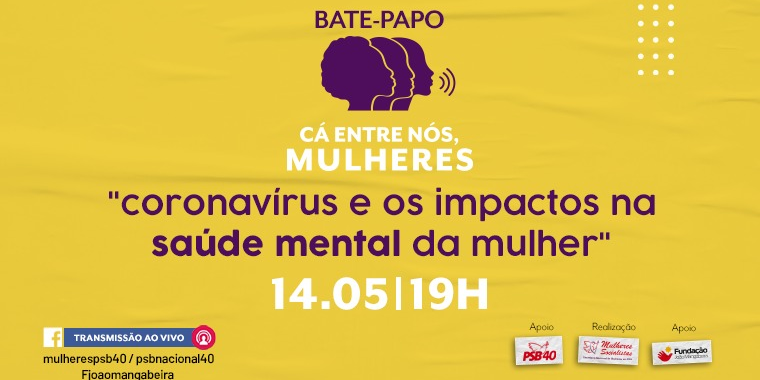 Nesta quinta-feira, 14, será realizada a segunda edição do bate-papo “Cá entre nós, Mulheres”. Realizado pela Secreatria Nacional de Mulheres do PSB, o programa, desta vez, debaterá a temática será ‘coronavírus e os impactos na saúde mental da mulher’, e contará com a participação da doutora Valeska Zanello, professora do Departamento de Psicologia Clínica da Universidade de Brasília e coordenadora do grupo de pesquisa “Saúde Mental e Gênero” (foco em mulheres) no CNPq.