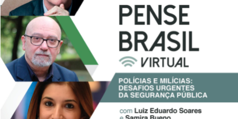 Na próxima segunda-feira (01/02), o Pense Brasil Virtual traz para o debate o tema “Polícias e Milícias: desafios urgentes da Segurança Pública”. Participam desta edição Samira Bueno, diretora executiva do Fórum Brasileiro de Segurança Pública, Luis Eduardo Soares, ex-secretário nacional de Segurança Pública e o Presidente da Fundação João Mangabeira, Ricardo Coutinho, que mediará a discussão.