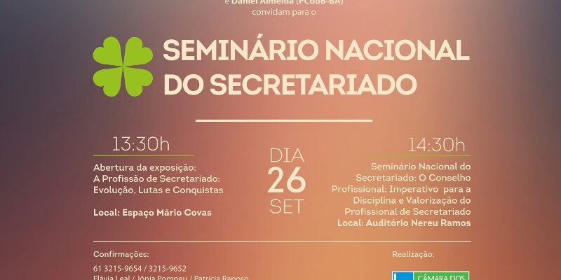 Na tarde desta terça-feira, 26, aconteceu, no Auditório Nereu Ramos, o Seminário Nacional do Secretariado. O objetivo do Seminário foi discutir a importância da criação do Conselho de Secretariado e a legalidade do exercício profissional.