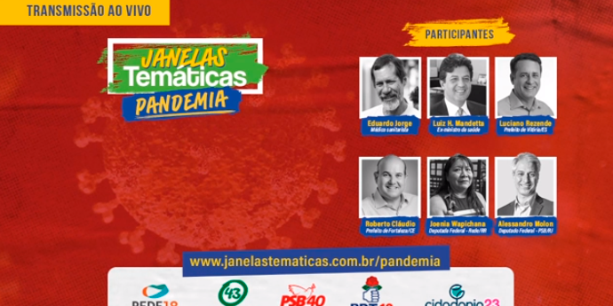 O debate é promovido pelo PSB, PDT, Rede, PV e Cidadania e transmitido pelas redes sociais dos cinco partidos.Participam da live o ex-ministro da Saúde Luiz Henrique Mandetta e os prefeitos de Fortaleza, Roberto Cláudio (PDT), e de Vitória, Luciano Rezende (Cidadania).